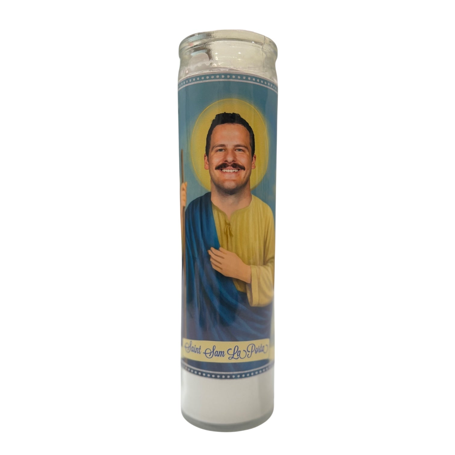 Tall white altar/prayer candle featuring your choice of Patron Saint of The Lions!